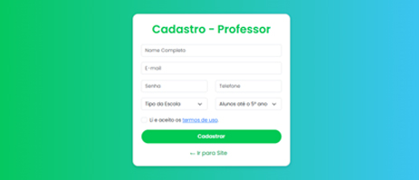 Tela de cadastro. O professor deverá preencher os dados solicitados: