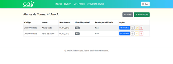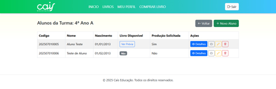 Bem-vindo(a) à plataforma da Cais Educação! Abaixo você encontrará um passo a passo completo de como utilizar o sistema para cadastrar seus alunos e solicitar a produção dos livros.