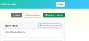 Depois de preencher o conteúdo (texto e/ou ficha), o professor deve clicar no botão “Solicitar Produção” no topo da página do aluno.