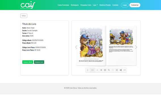 Assim que a produção for concluída o campo “Livro Disponível” será alterado, e no lugar aparecerá um botão para visualizar uma prévia do livro.