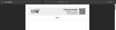 Ao cadastrar um aluno, o sistema gera automaticamente um código. Ao imprimir a ficha do aluno é criado um QR CODE para que o processo de produção do livro possa ser acompanhado.